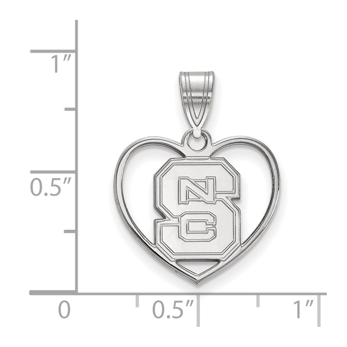 Sterling Silver Rhodium-plated LogoArt North Carolina State University N-C-S Heart Pendant