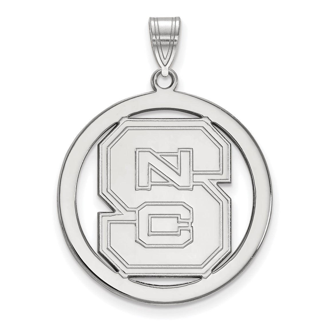 Sterling Silver Rhodium-plated LogoArt North Carolina State University N-C-S Large Circle Pendant