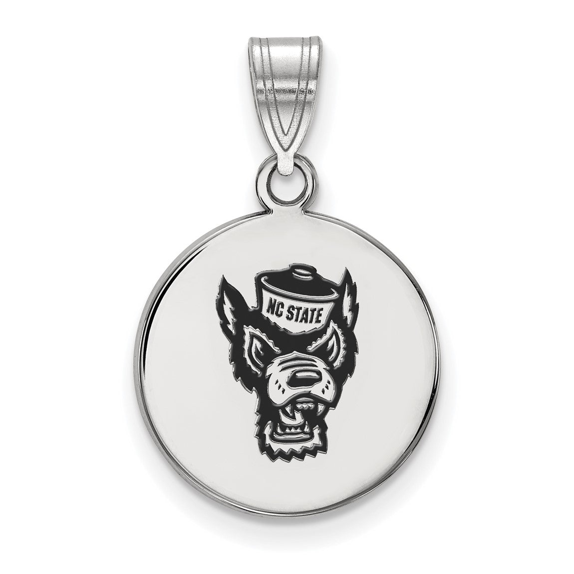 Sterling Silver Rhodium-plated LogoArt North Carolina State University Wolf Medium Enameled Disc Pendant