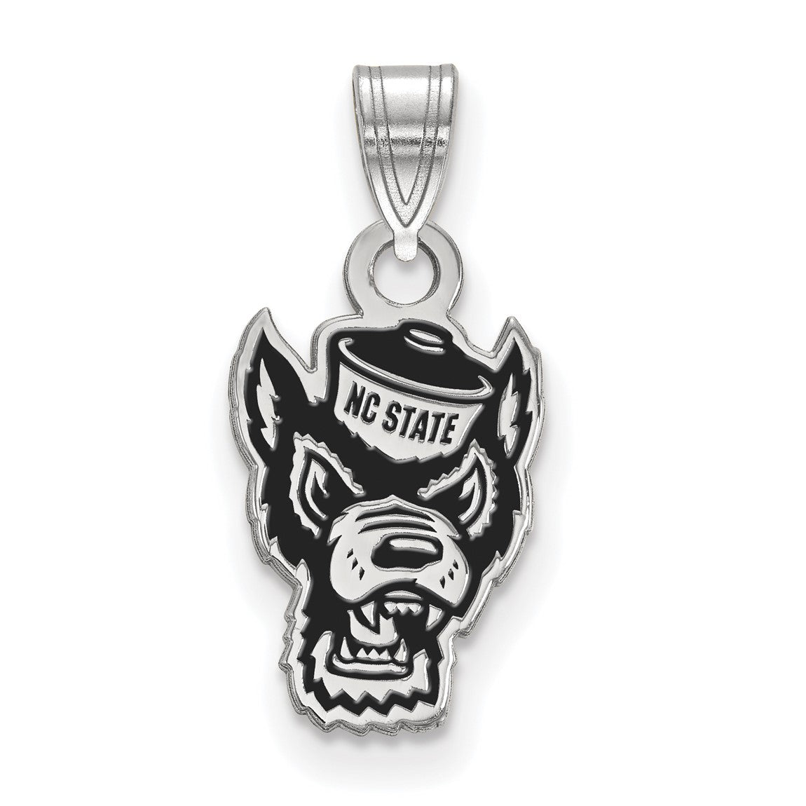 Sterling Silver Rhodium-plated LogoArt North Carolina State University Wolf Small Enameled Pendant