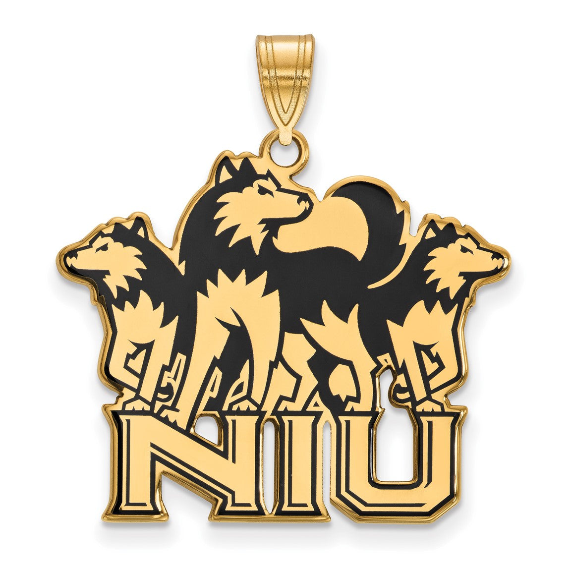 Sterling Silver Gold-plated LogoArt Northern Illinois University N-I-U with Huskies Extra Large Enameled Pendant