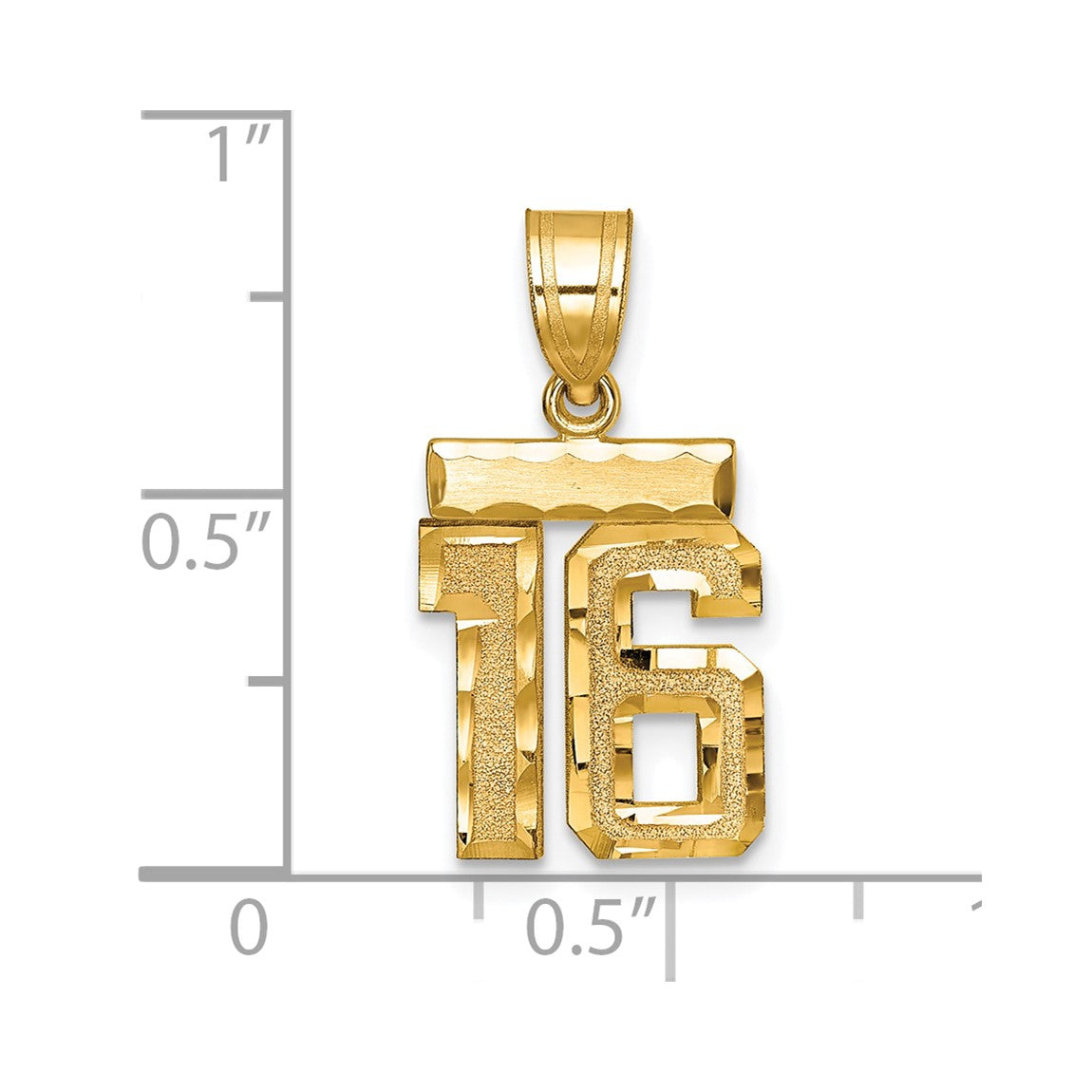 14k Yellow Gold Small Diamond-Cut Number 16 Pendant