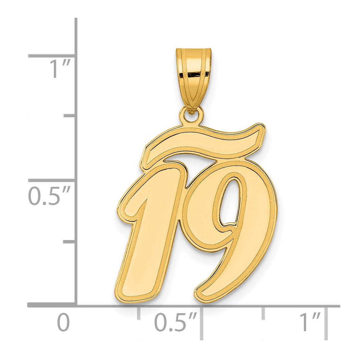14k Yellow Gold Brushed Border Script Number 19 Pendant