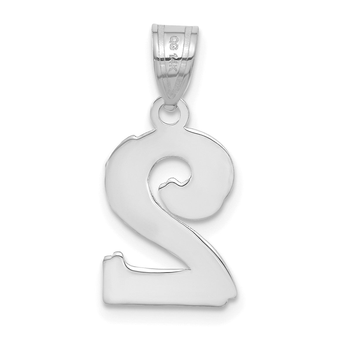 14k White Gold Polished Etched Number 2 Pendant