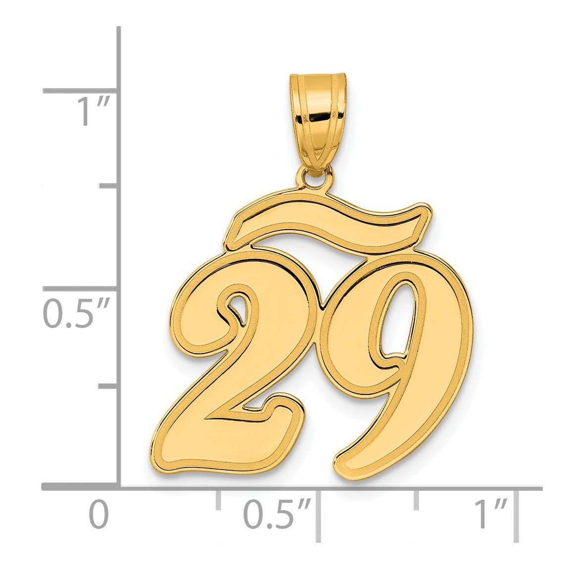14k Yellow Gold Brushed Border Script Number 29 Pendant