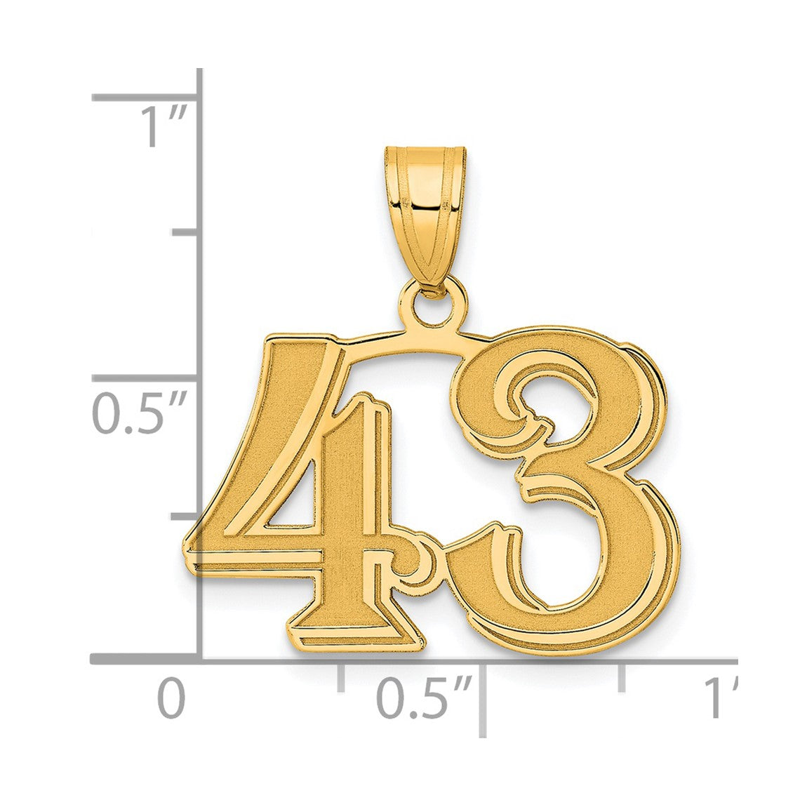 14k Yellow Gold Polished Etched Number 43 Pendant