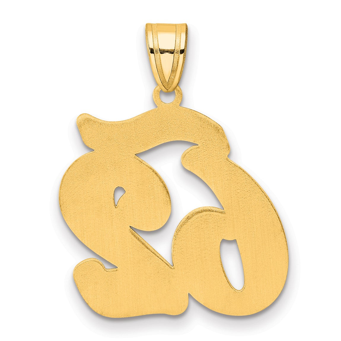 14k Yellow Gold Brushed Border Script Number 62 Pendant