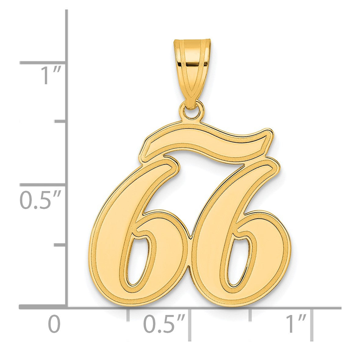 14k Yellow Gold Brushed Border Script Number 66 Pendant