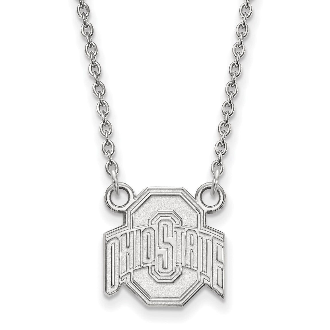 14k White Gold LogoArt The Ohio State University Small Pendant 18 inch Necklace