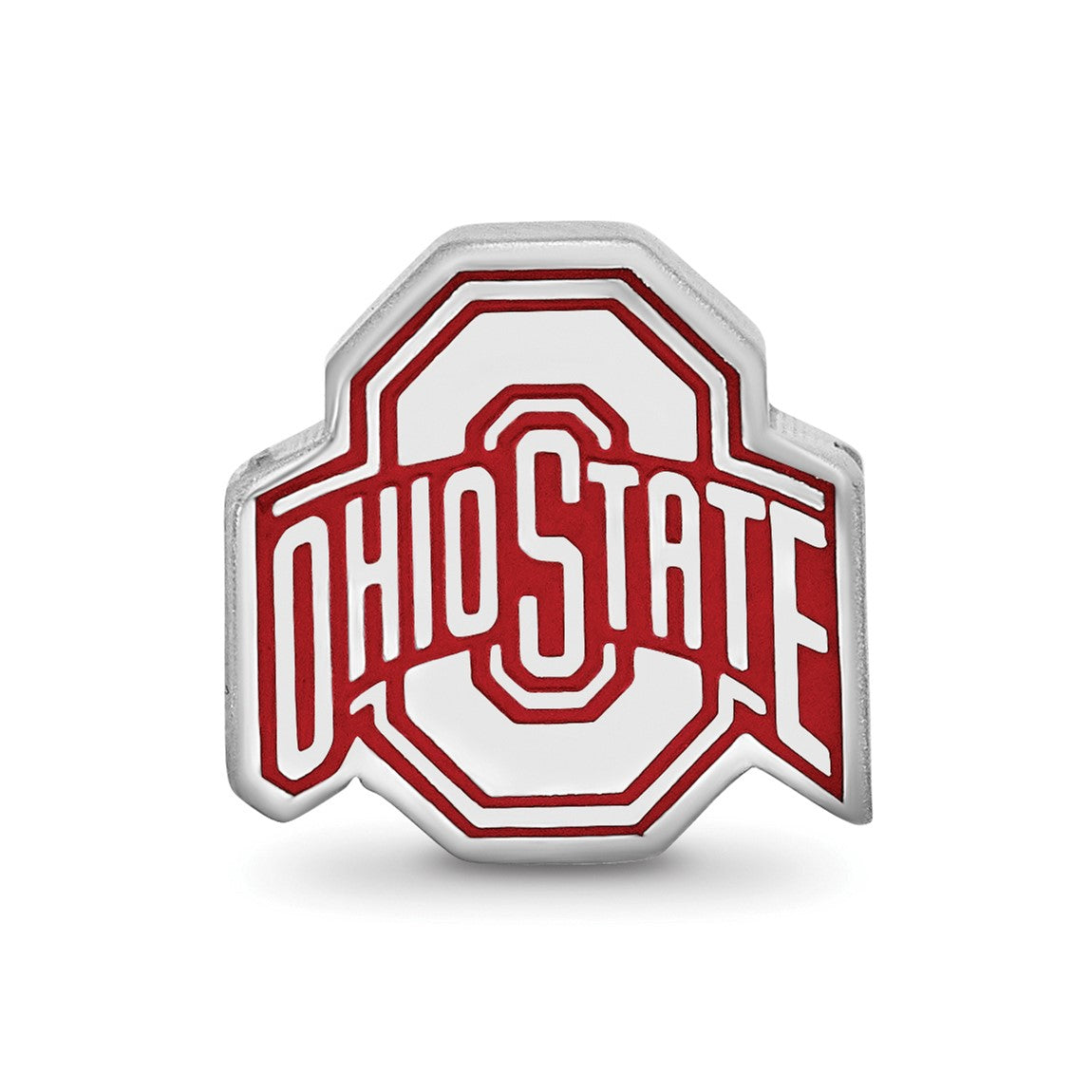 Sterling Silver Rhodium-plated LogoArt The Ohio State University Enameled Extruded Logo Bead