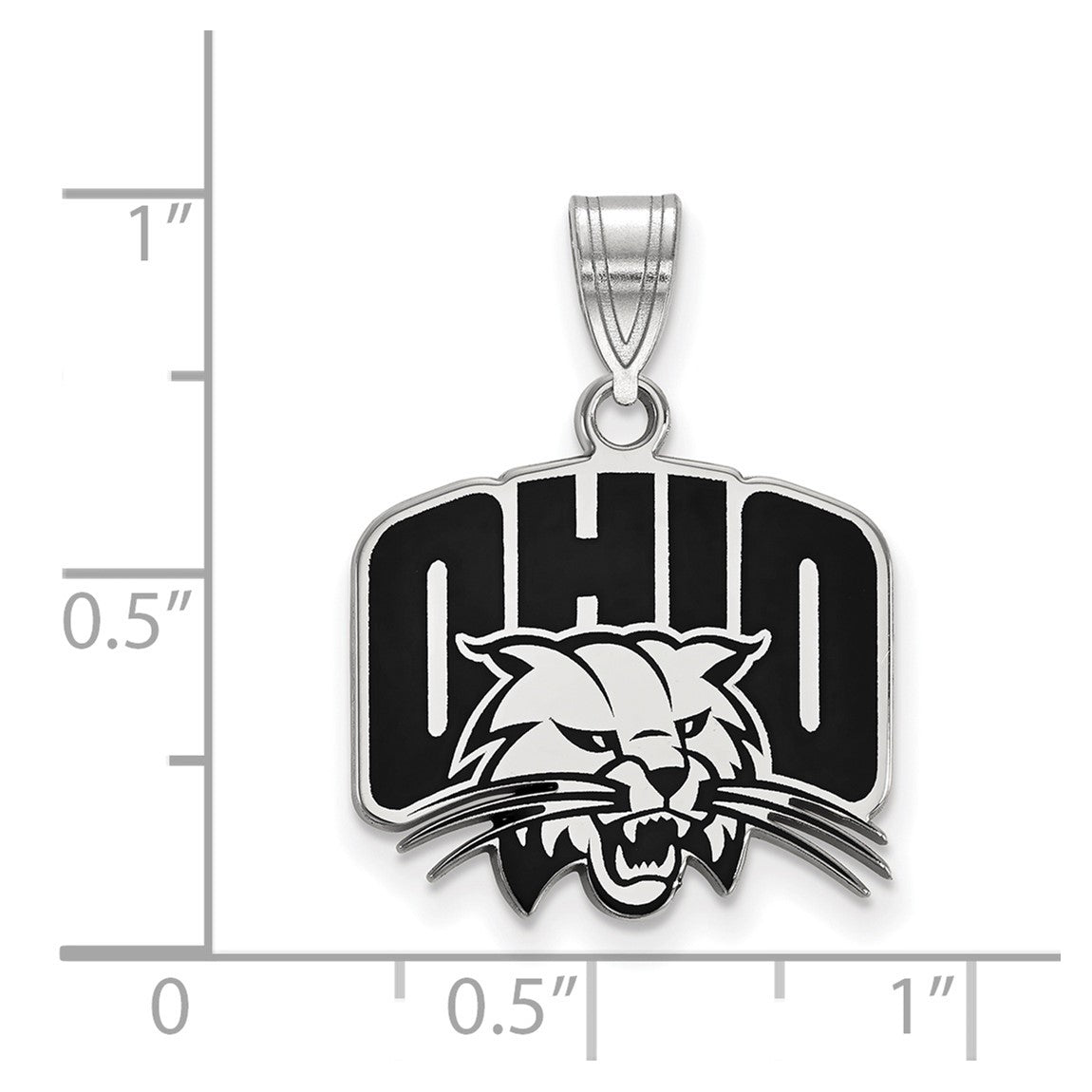 Sterling Silver Rhodium-plated LogoArt Ohio University Medium Enameled Pendant