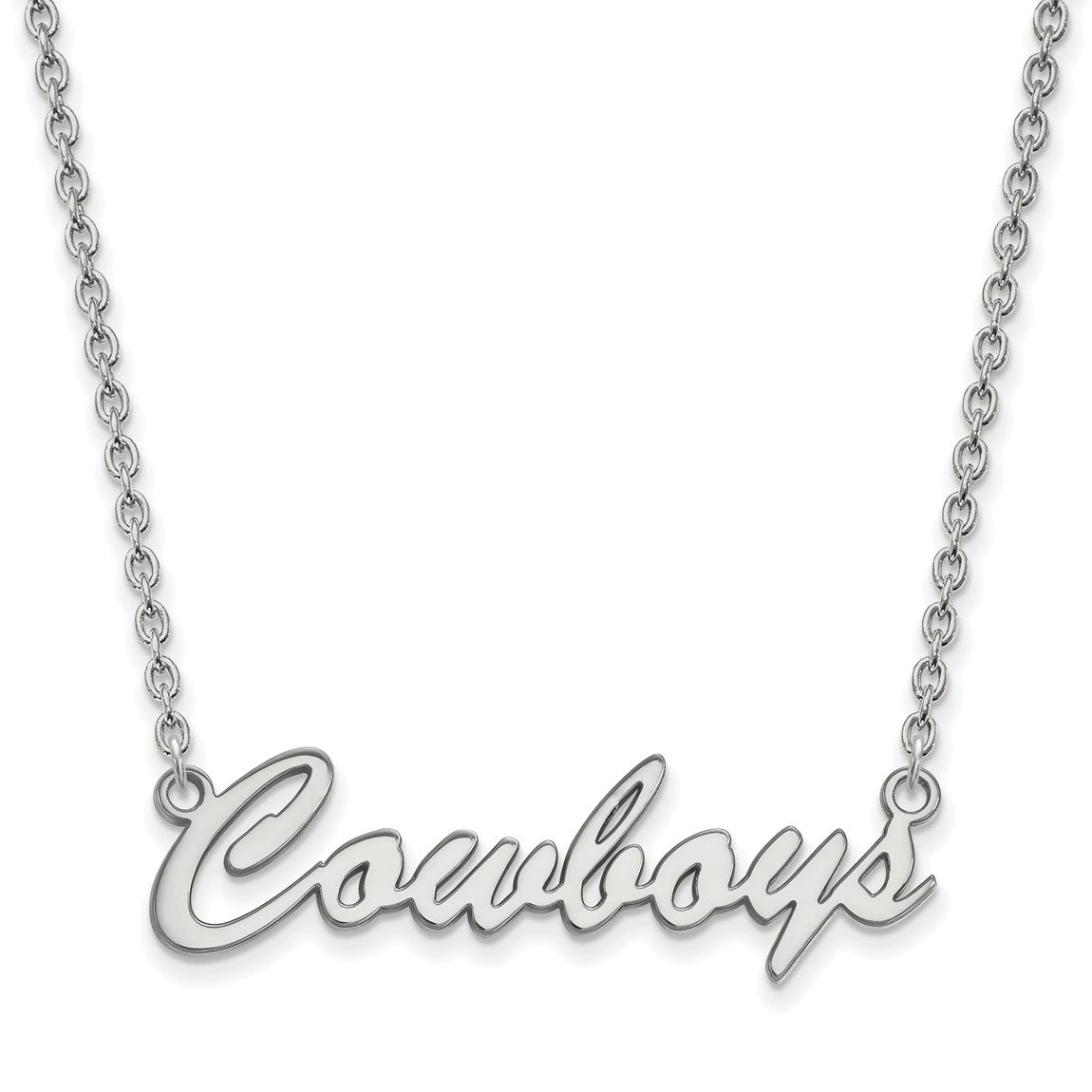 Sterling Silver Rhodium-plated LogoArt Oklahoma State University Cowboys Script Medium Pendant 18 inch Necklace