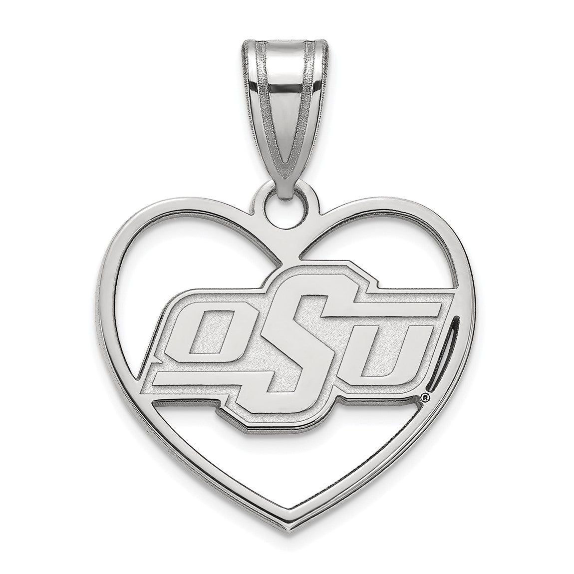 Sterling Silver Rhodium-plated LogoArt Oklahoma State University O-S-U Heart Pendant