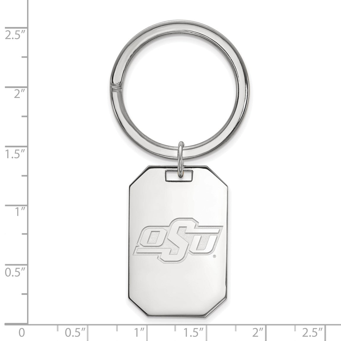 Sterling Silver Rhodium-plated LogoArt Oklahoma State University O-S-U Key Ring