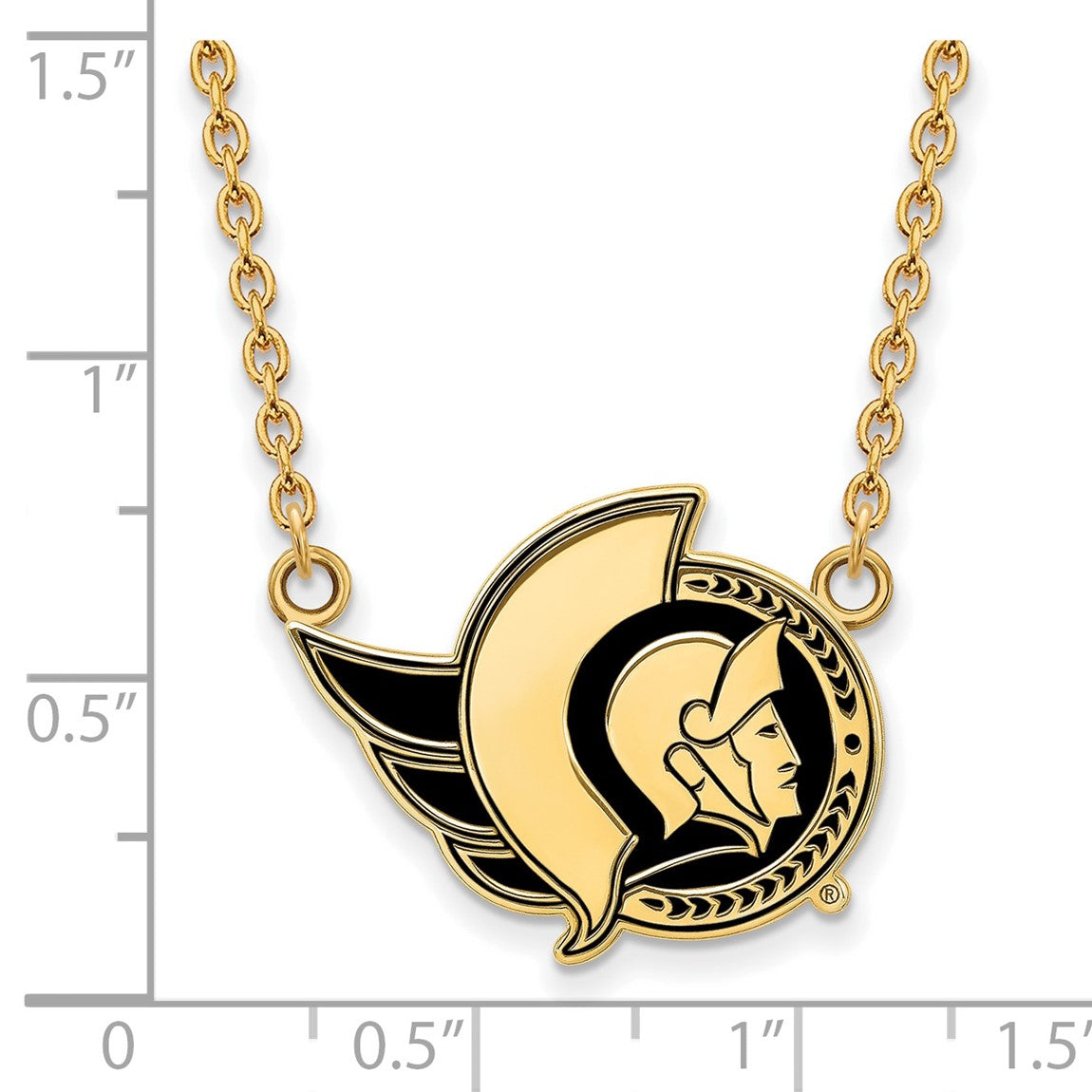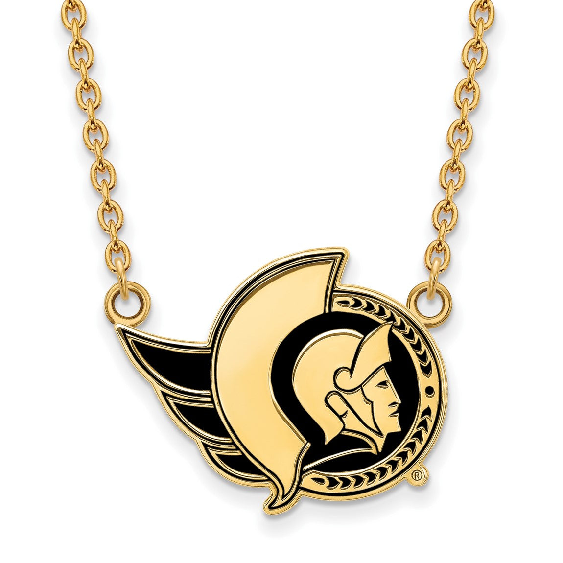 Sterling Silver Gold-plated NHL LogoArt Ottawa Senators Large Enameled Pendant 18 inch Necklace