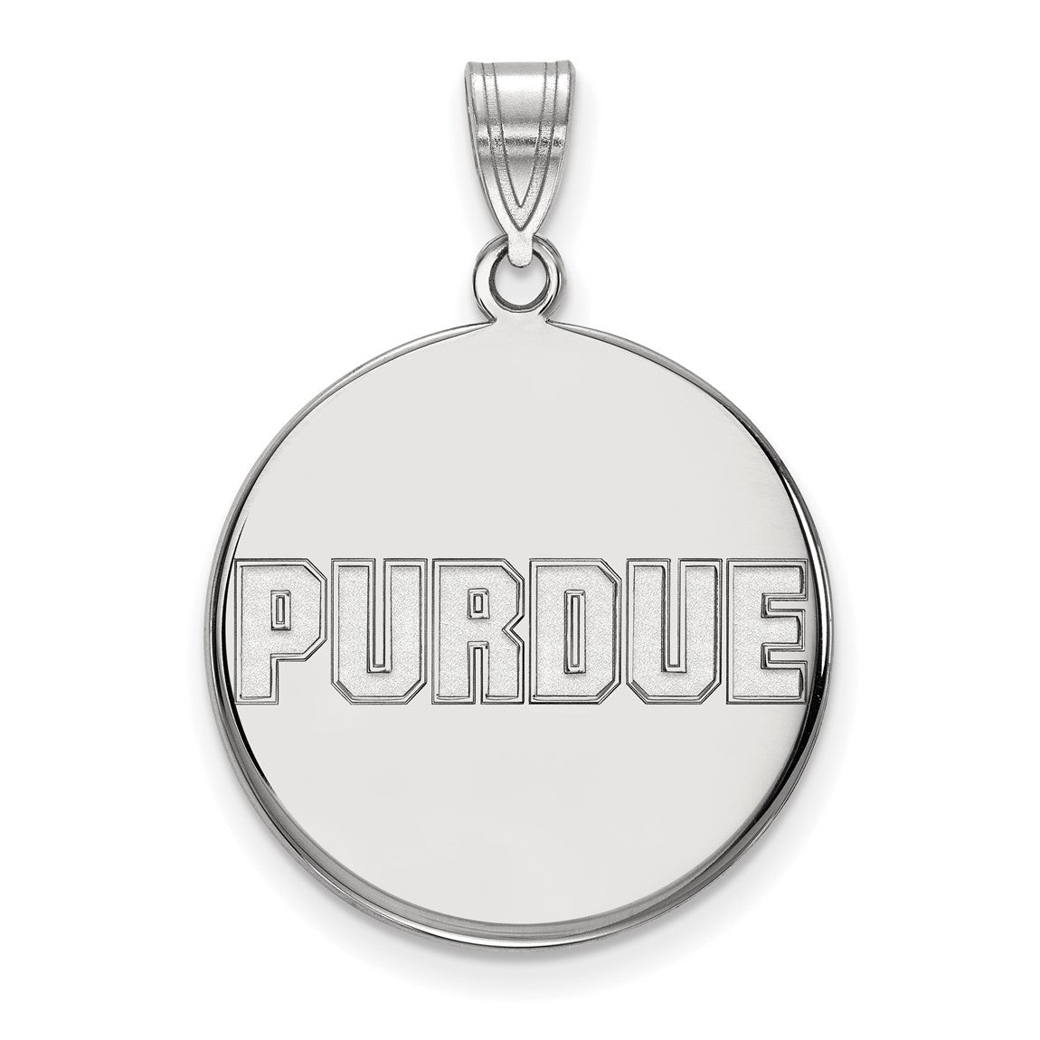 Sterling Silver Rhodium-plated LogoArt Purdue University Block Type Large Disc Pendant