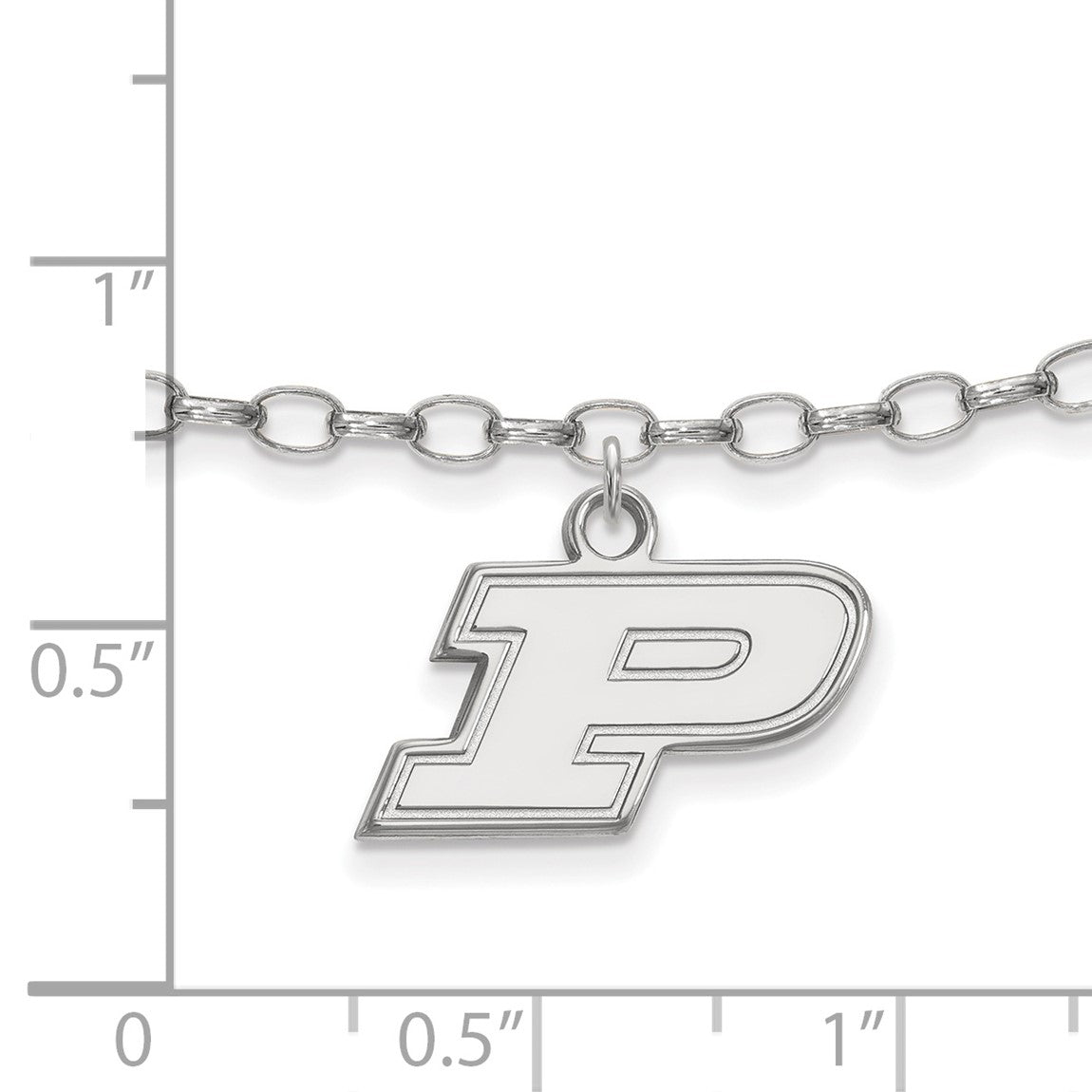 Sterling Silver Rhodium-plated LogoArt Purdue University Letter P 9-inch Anklet