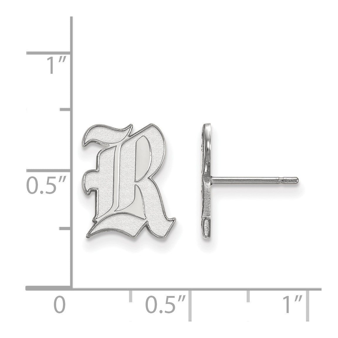 10k White Gold LogoArt Rice University Letter R Small Post Earrings