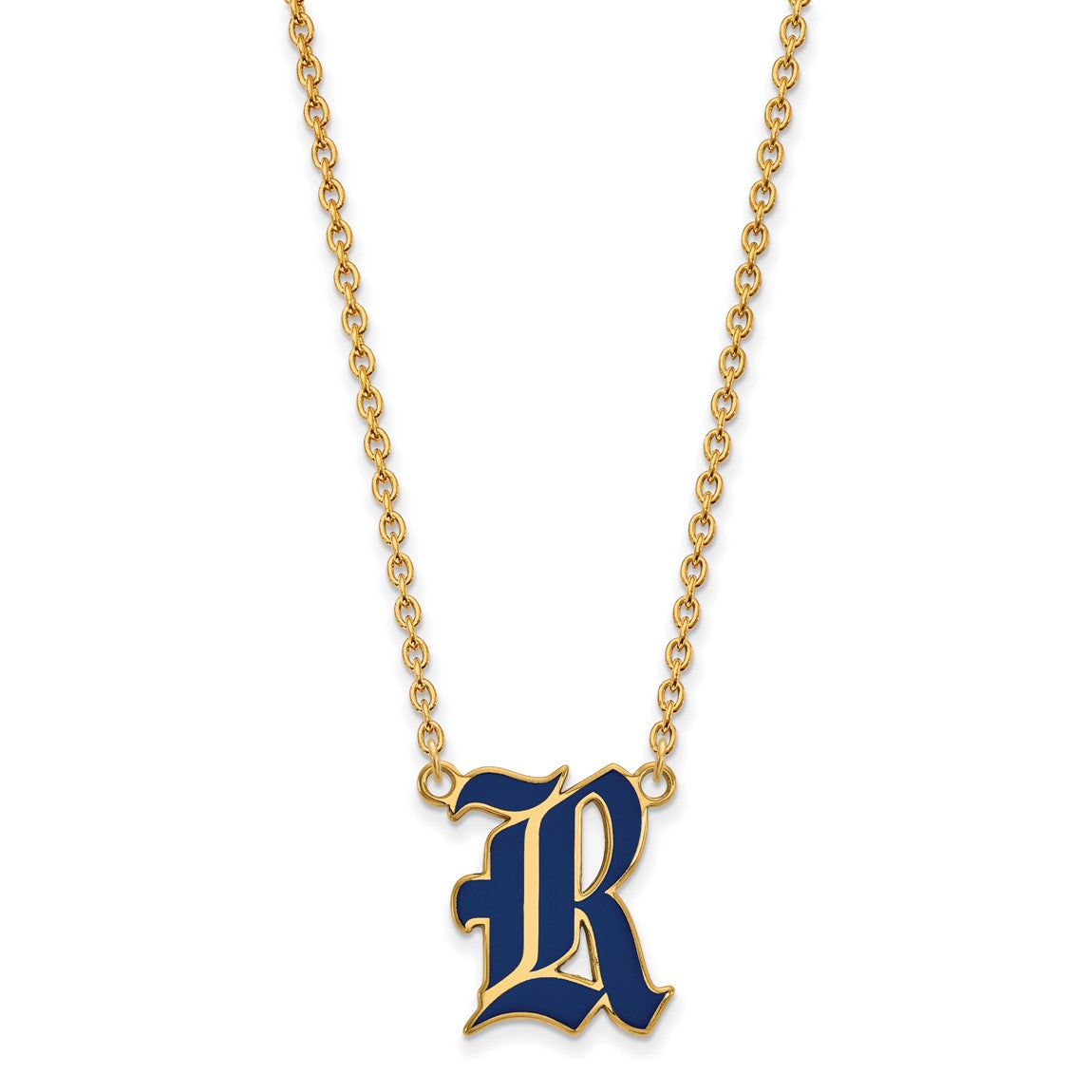Sterling Silver Gold-plated LogoArt Rice University Letter R Large Enameled Pendant 18 inch Necklace