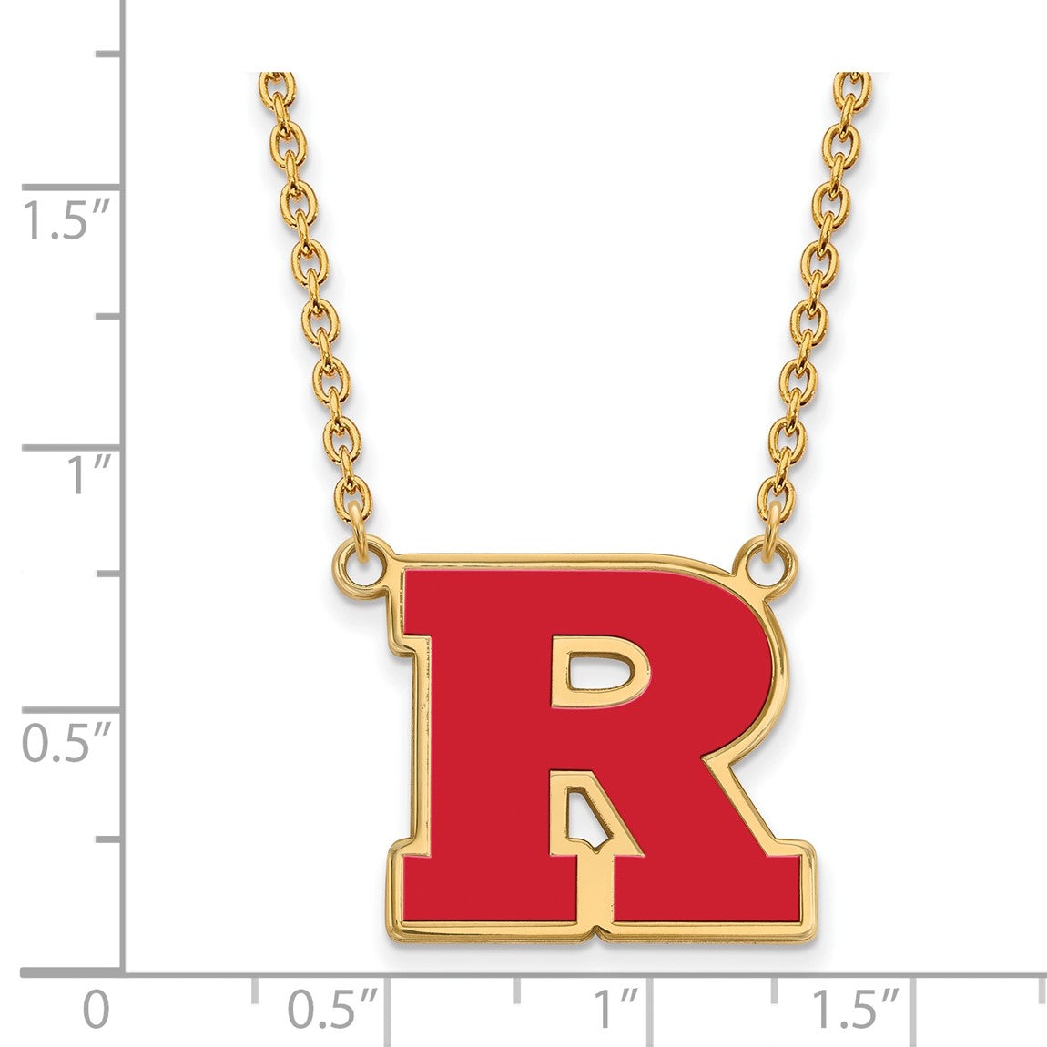 Sterling Silver Gold-plated LogoArt Rutgers University Letter R Large Enameled Pendant 18 inch Necklace
