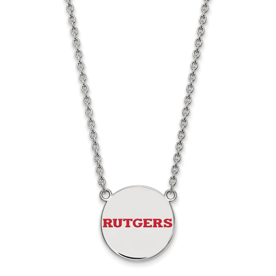 Sterling Silver Rhodium-plated LogoArt Rutgers University Large Enameled Disc Pendant 18 inch Necklace