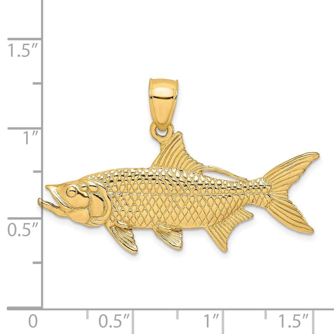 14k Yellow Gold 3-D Textured Tarpon Fish Pendant
