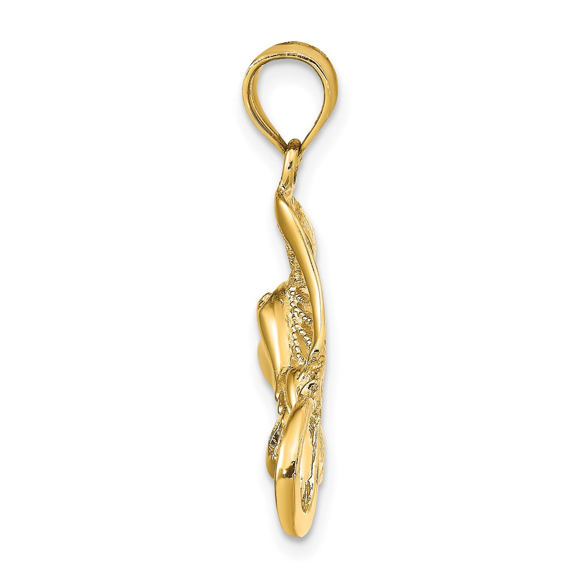 14k Yellow Gold Polished and Beaded Accent Stingray Pendant