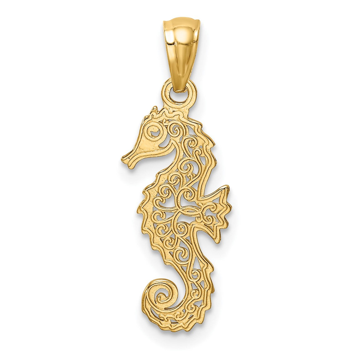 14k Yellow Gold Polished Filigree Seahorse Pendant