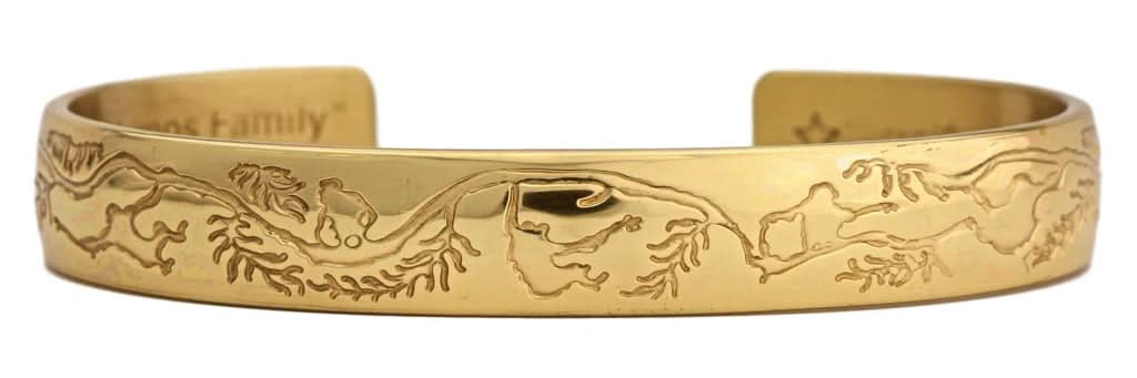 Collaborative design born when Dr. Jane Goodall introduced two artists across the Atlantic: British illustrator Allan Marks and California jeweler Sergio Lub. Honoring their common friend's work with the chimps, all proceeds from the sale of this bracelet would benefit the Jane Goodall Institute.