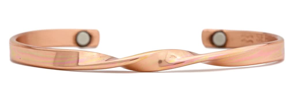 Handmade in USA - unbeatable quality, gorgeous design. The bracelet has two 2,000 Gauss north-pole, rare-earth magnets. All of Sergio Lub's designs are handcrafted the old fashioned way, starting from solid metal wires. They use no plating, no casting and no machine stamping, all industrial techniques that save time, but compromise quality. The red metal is 99.99% Copper, lead free, the best available. Copper is one of the friendliest elements as it combines with many others. To find copper this pure in nature is more difficult than finding pure gold. The yellow metal is Jeweler's Brass, an alloy of 85% copper and 15% zinc, both essential minerals worn since prehistoric times by many non-related cultures around the world. Science has already proven that metals such as copper are absorbed through the skin, so besides their beauty, the bracelets can also be considered a time-release source of essential minerals.