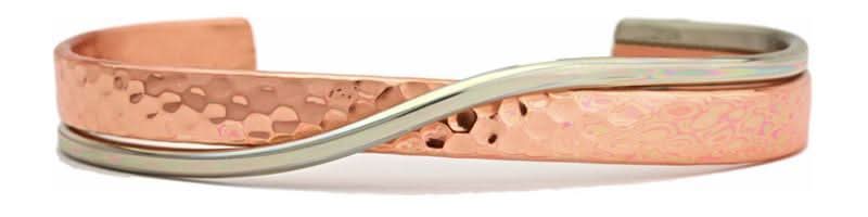 Our yellow metal is Jeweler's Brass, an alloy of 85% copper and 15% zinc, both essential minerals worn since prehistoric times by many non-related cultures around the world. Science has already proven that metals such as copper are absorbed through the skin, so besides their beauty, our bracelets can also be considered a time-release source of essential minerals.