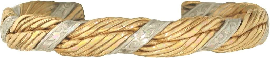 Our yellow metal is Jeweler's Brass, an alloy of 85% copper and 15% zinc, both essential minerals worn since prehistoric times by many non-related cultures around the world. Science has already proven that metals such as copper are absorbed through the skin, so besides their beauty, our bracelets can also be considered a time-release source of essential minerals.