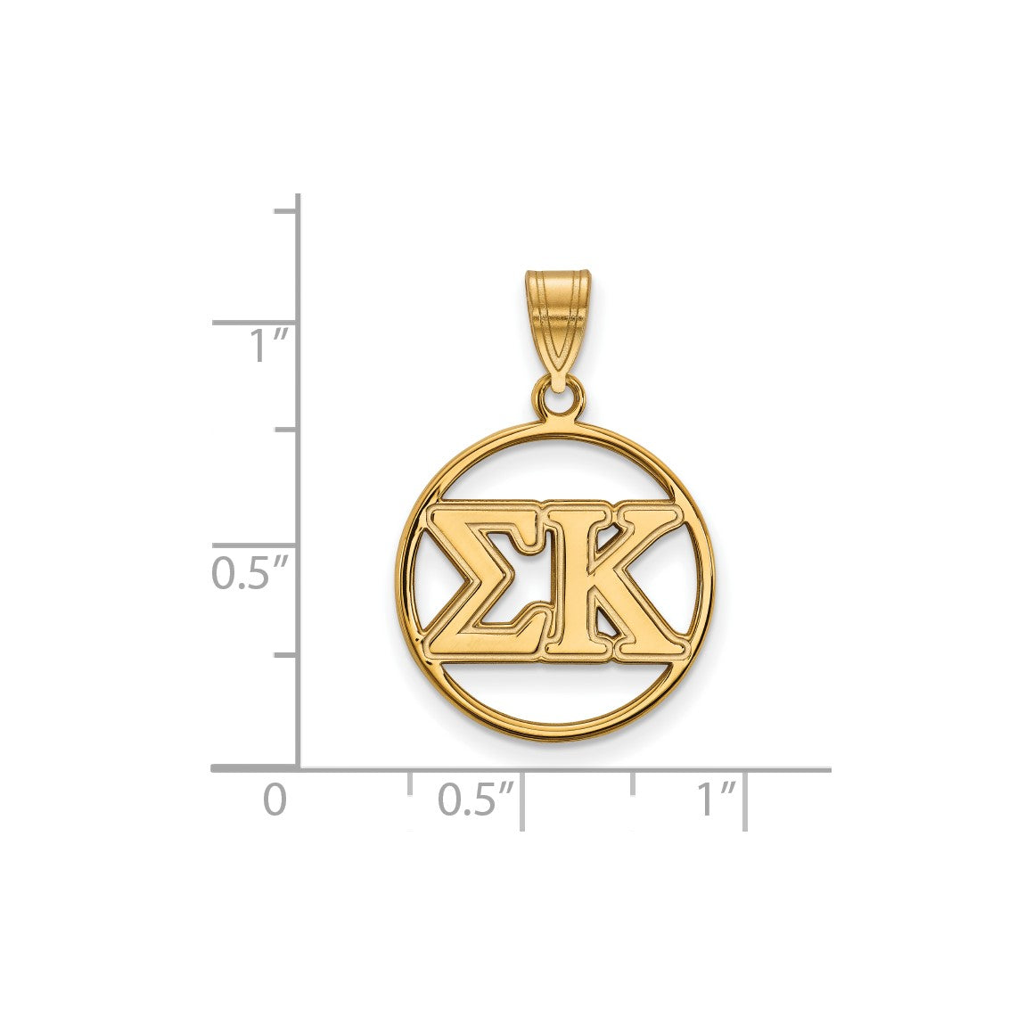 Sterling Silver Gold-plated LogoArt Sigma Kappa Sorority Greek Letters Medium Circle Pendant