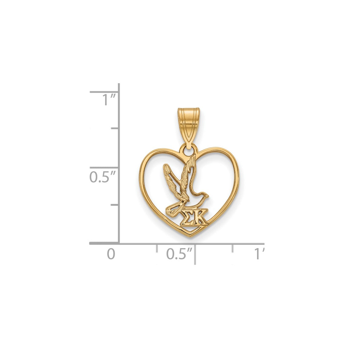Sterling Silver Gold-plated LogoArt Sigma Kappa Sorority Symbol Heart Pendant
