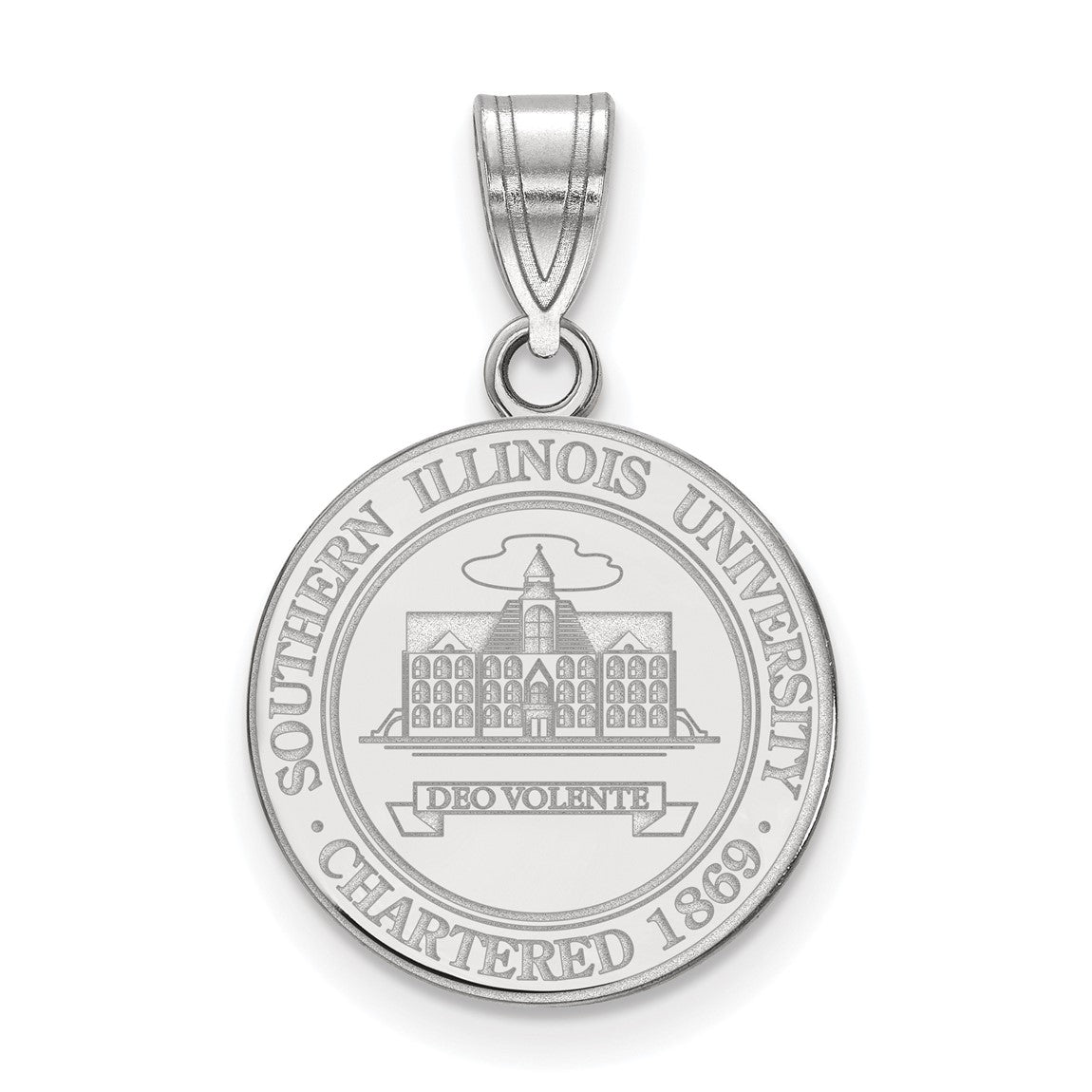 Sterling Silver Rhodium-plated LogoArt Southern Illinois University Medium Crest Pendant