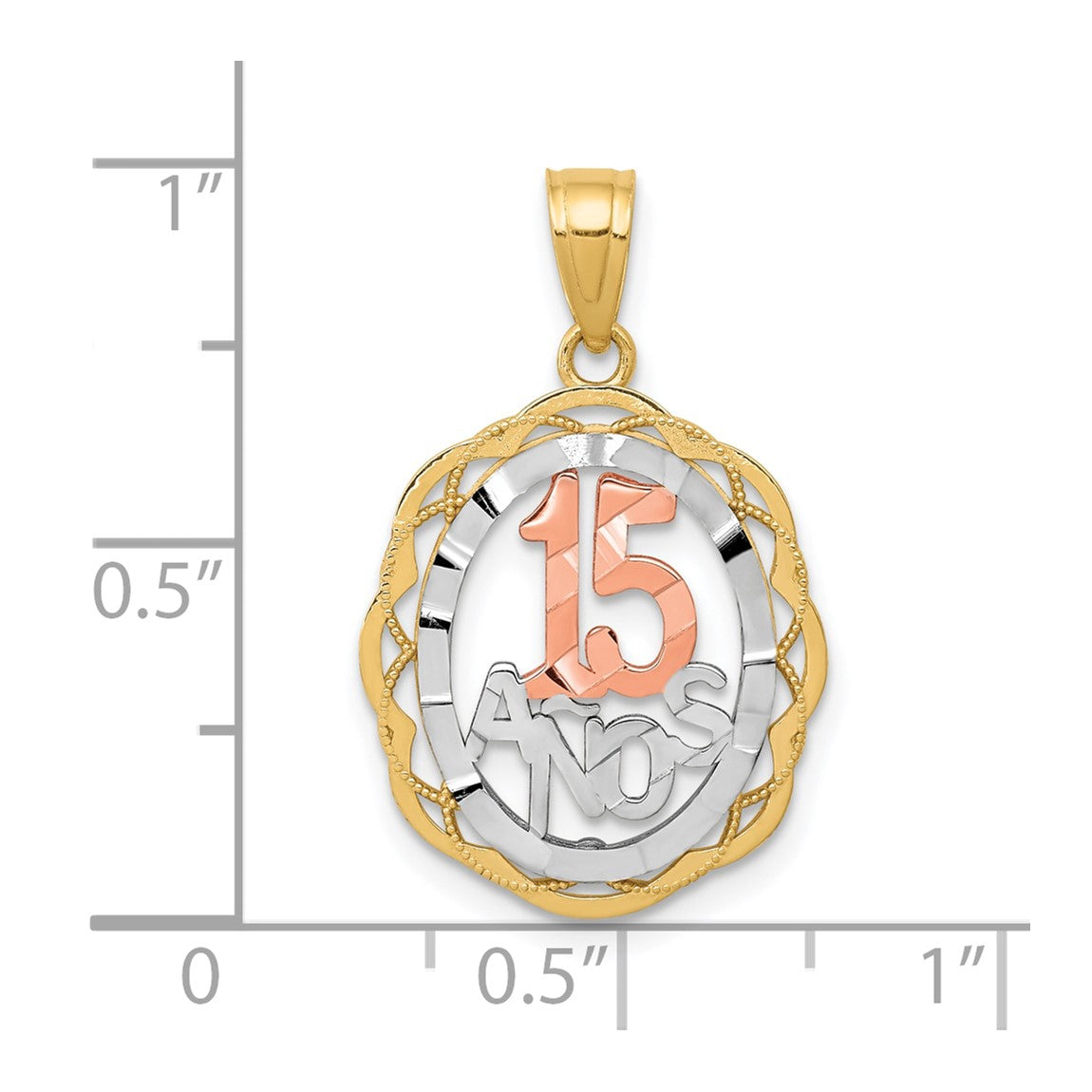 10k Yellow and Rose Gold with White Rhodium Sweet 15 Oval Pendant