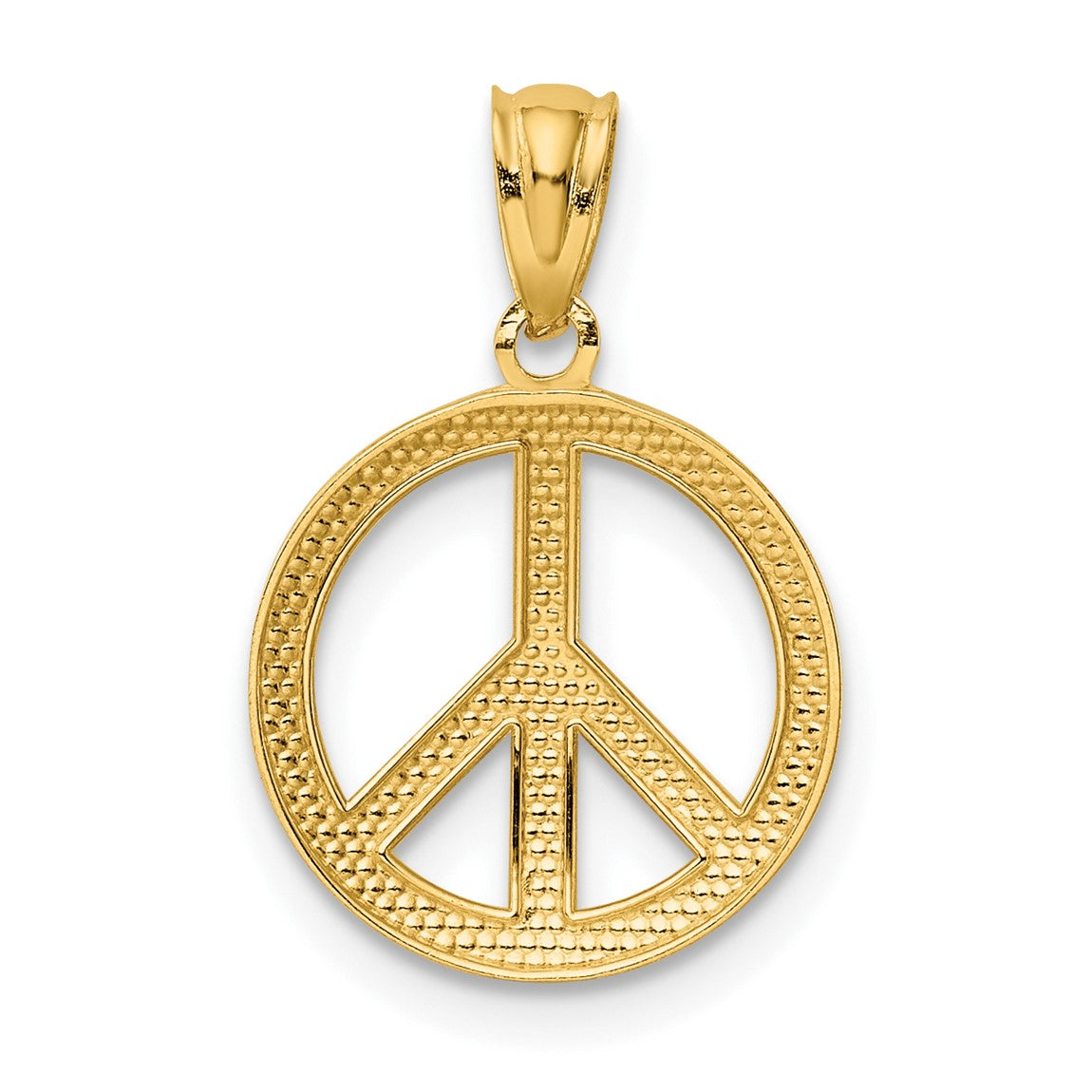 10K Yellow Gold Polished Peace Sign Circle Pendant