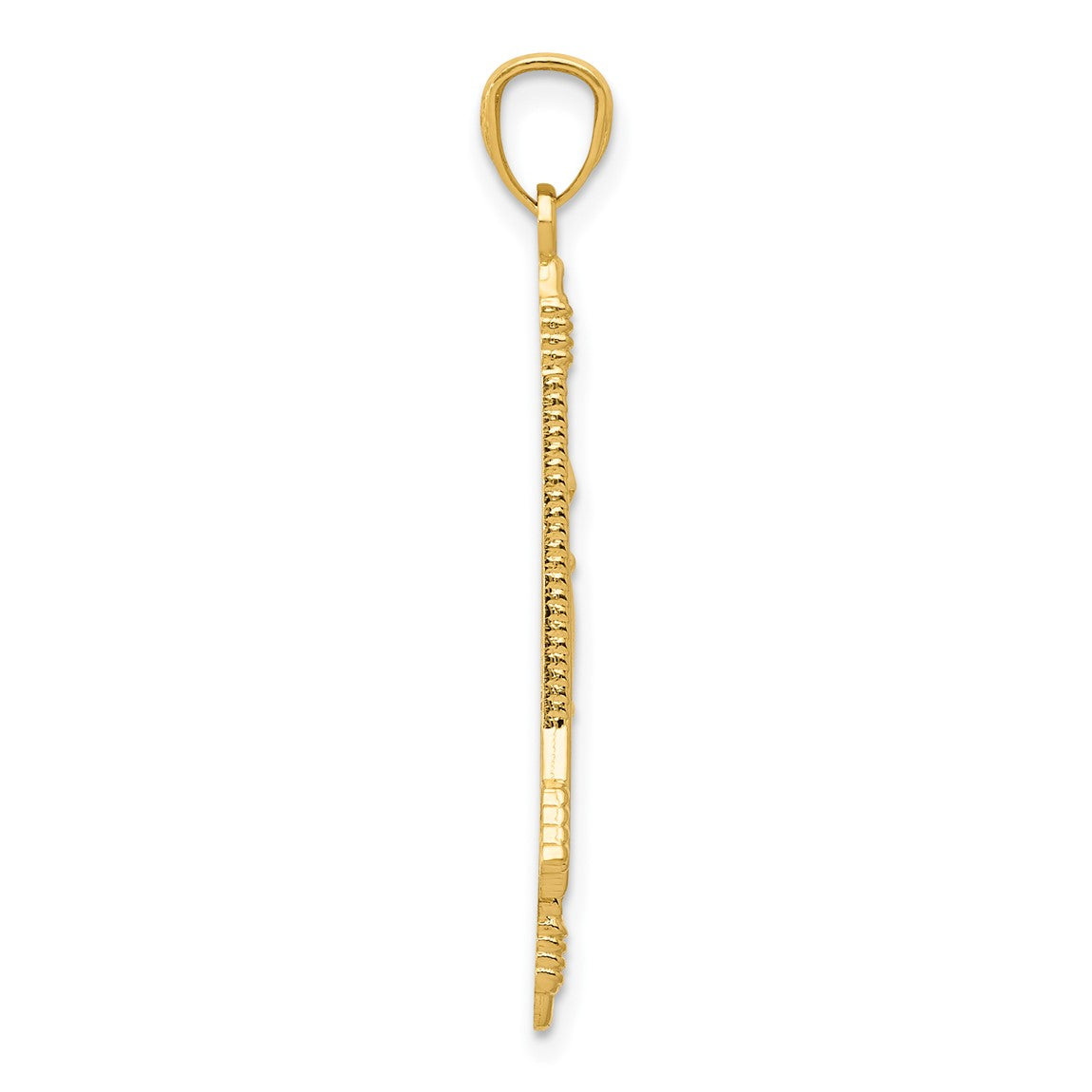 14k Yellow Gold Polished and Textured Bow and Arrow Pendant