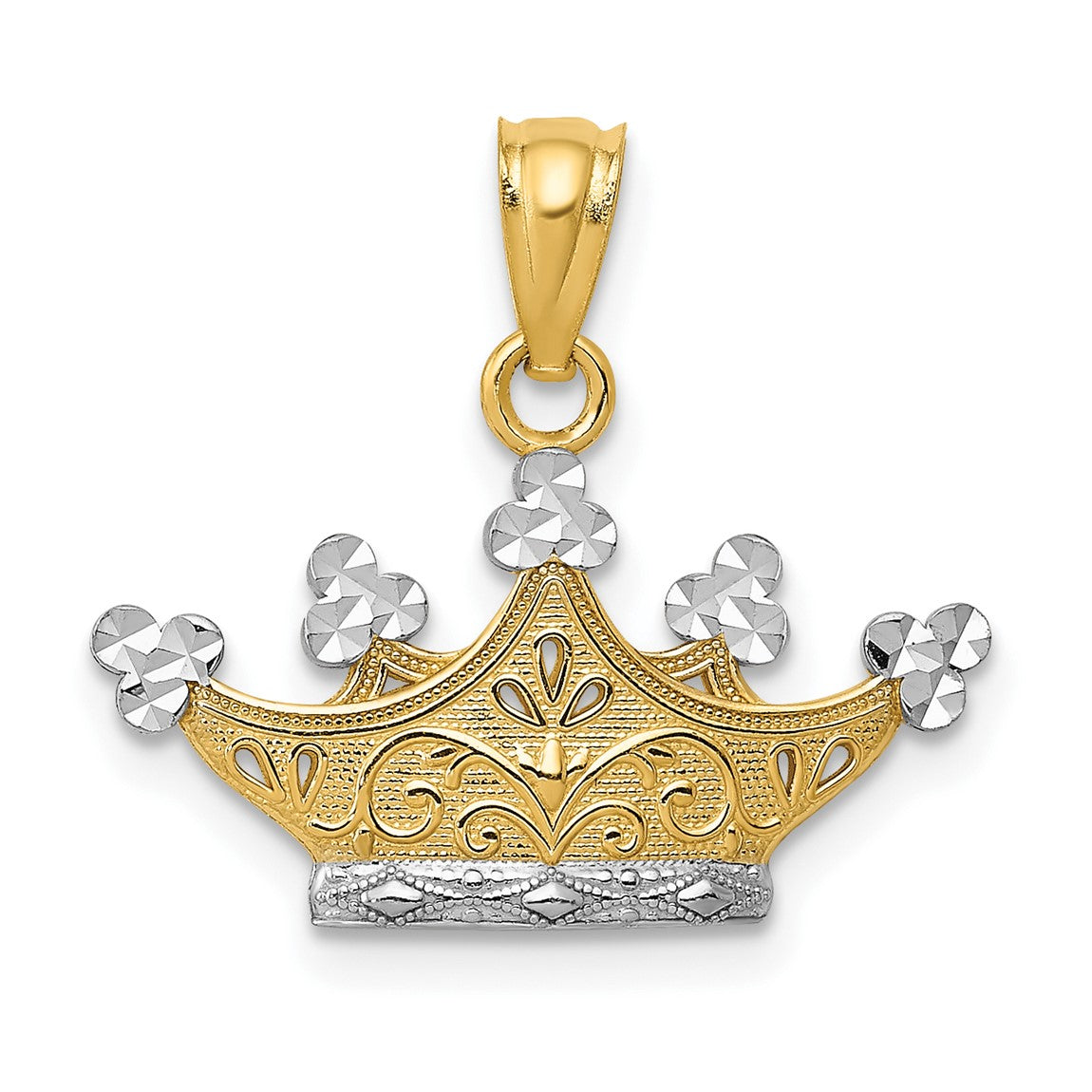 14k Yellow Gold & Rhodium Crown Pendant K2753