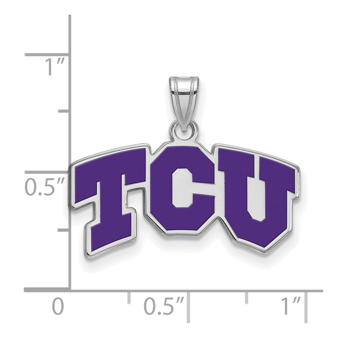 Sterling Silver Rhodium-plated LogoArt Texas Christian University T-C-U Small Enameled Pendant