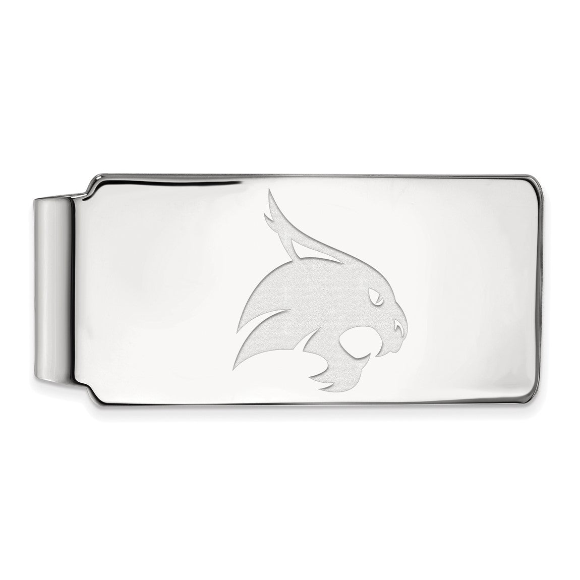 Sterling Silver Rhodium-plated LogoArt Texas State University Bobcat Money Clip