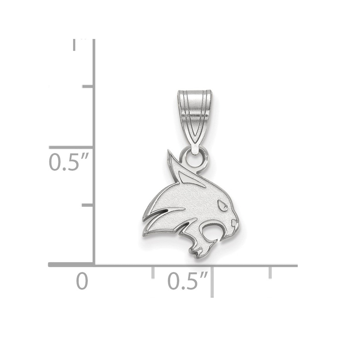 Sterling Silver Rhodium-plated LogoArt Texas State University Bobcat Small Pendant