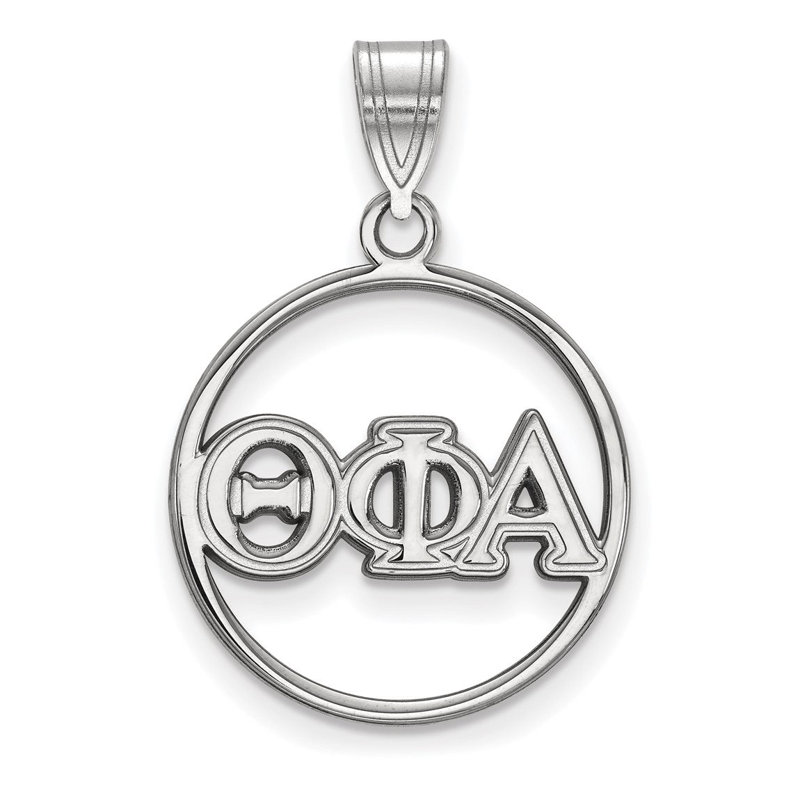 Sterling Silver Rhodium-plated LogoArt Theta Phi Alpha Sorority Greek Letters Medium Circle Pendant