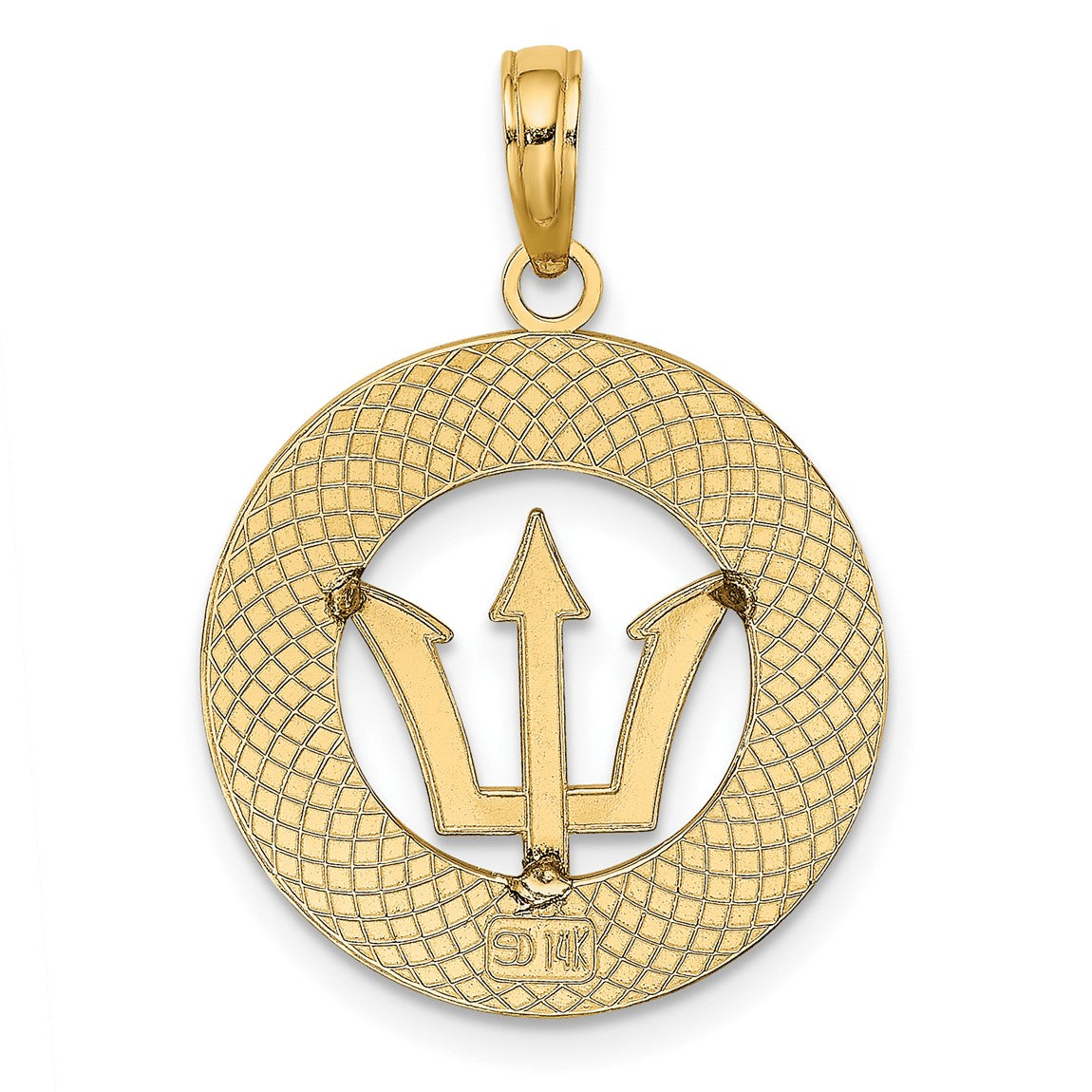 14k Yellow Gold Barbados On Round Frame w/Trident Spear Pendant