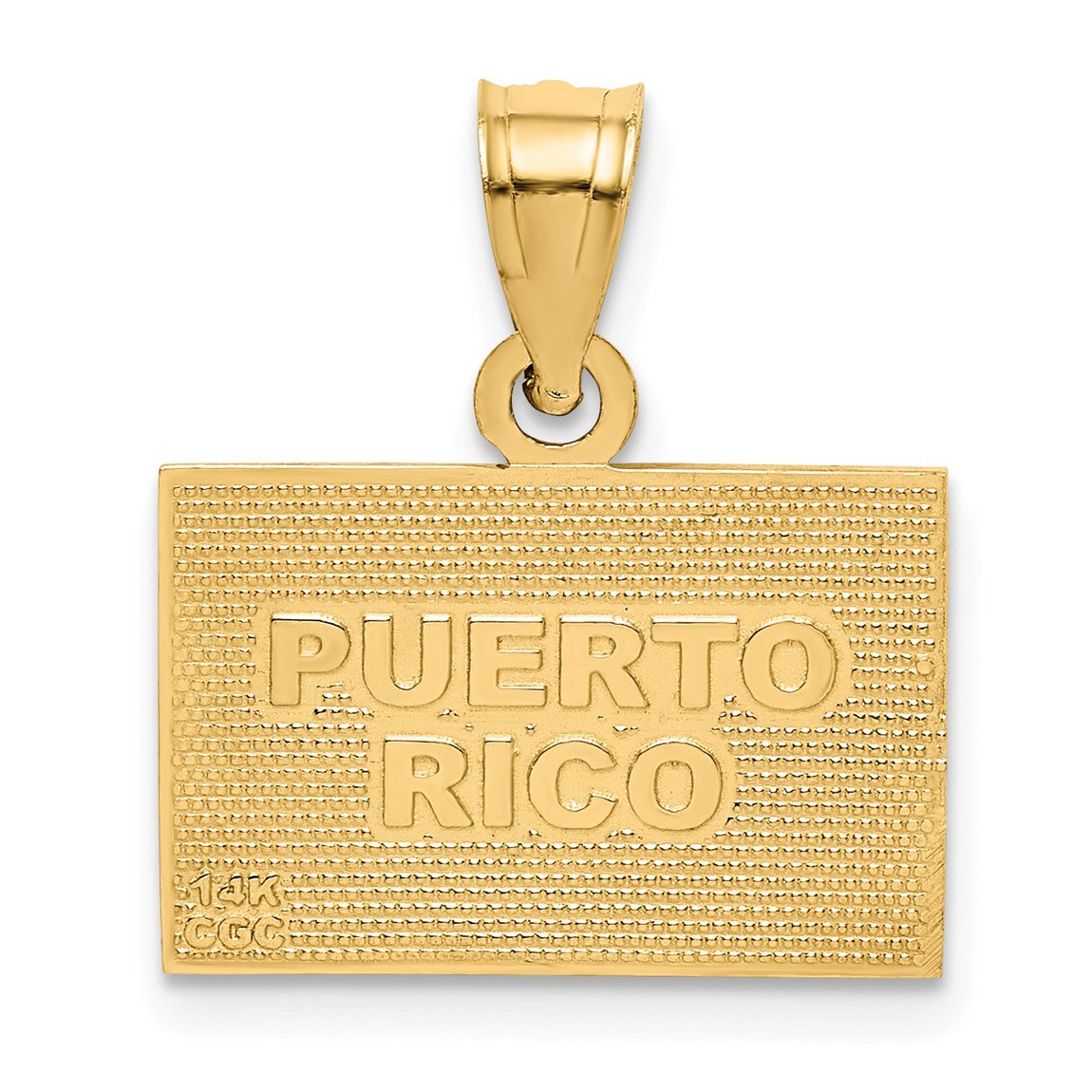 14k Yellow Gold Solid Enameled Puerto Rico Flag Pendant
