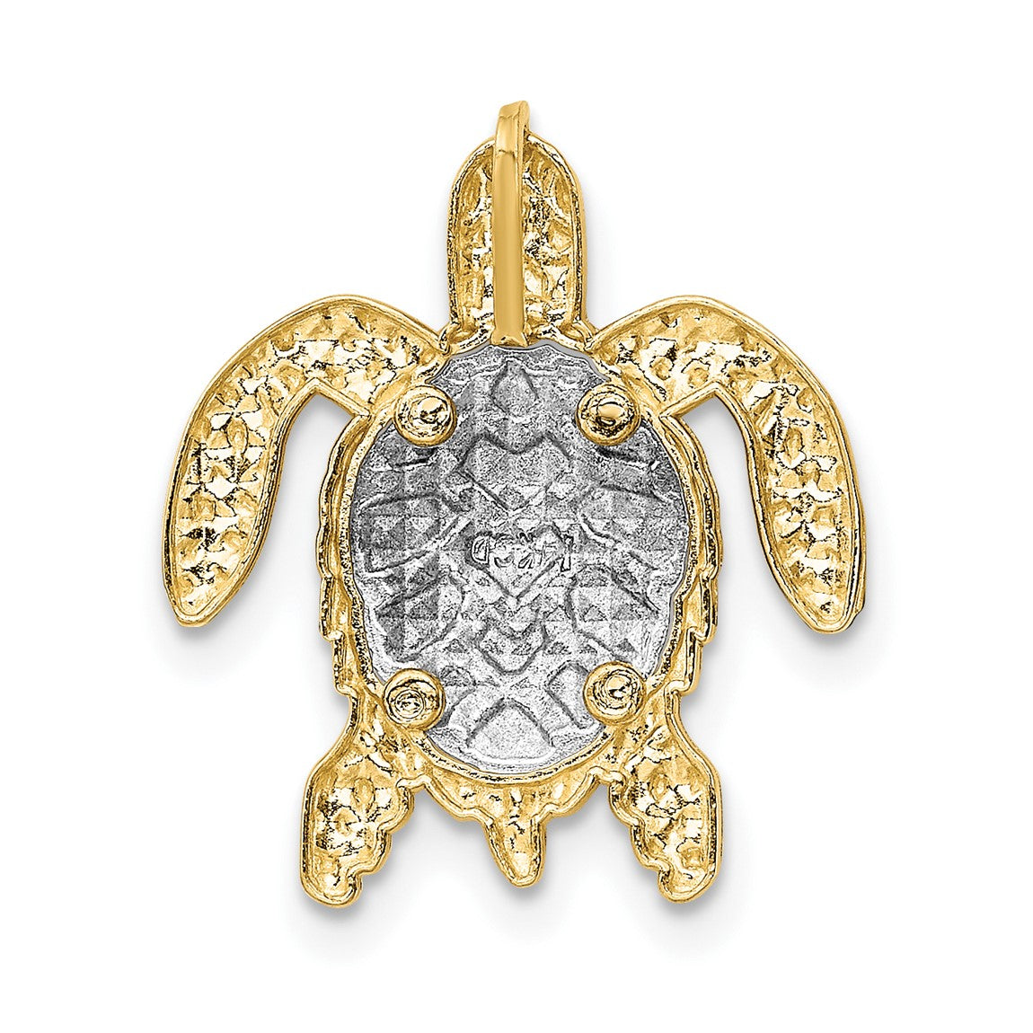 14k Yellow and White Gold Detailed Turtle Slide Pendant