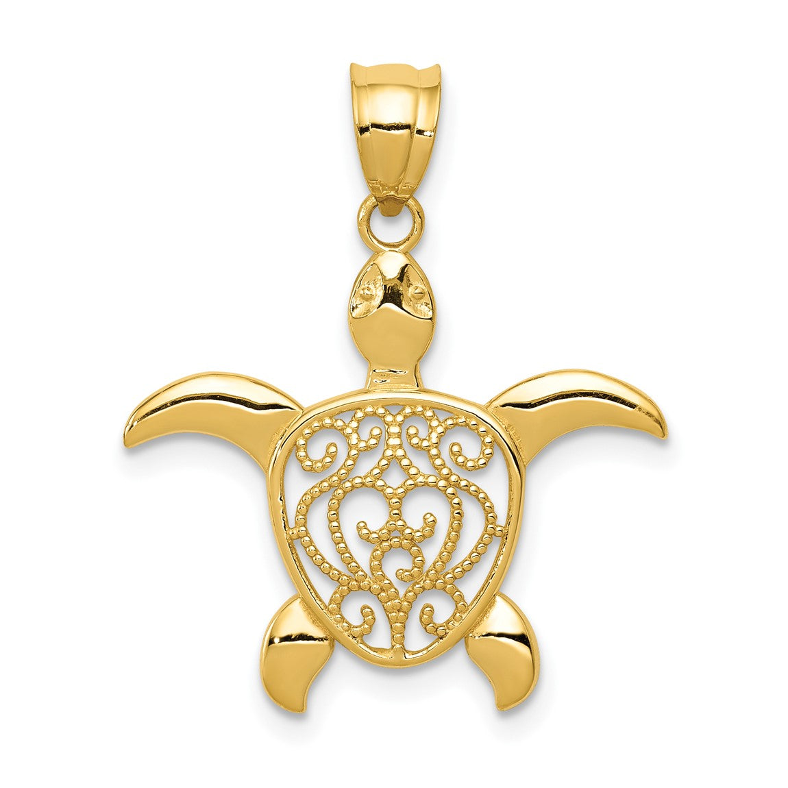 14k Yellow Gold Polished Filigree Sea Turtle Pendant