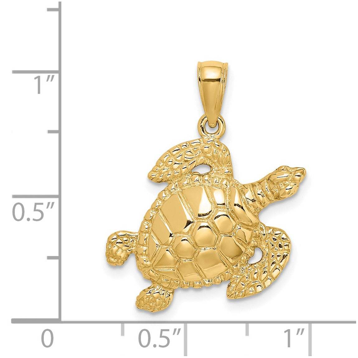 14k Yellow Gold Textured Sea Turtle Pendant K7682