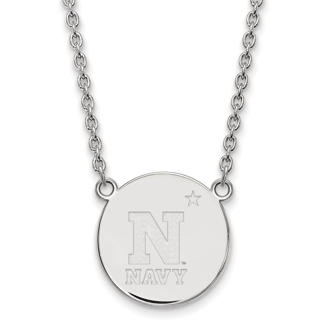 Sterling Silver Rhodium-plated LogoArt US Naval Academy Large Disc Pendant 18 inch Necklace