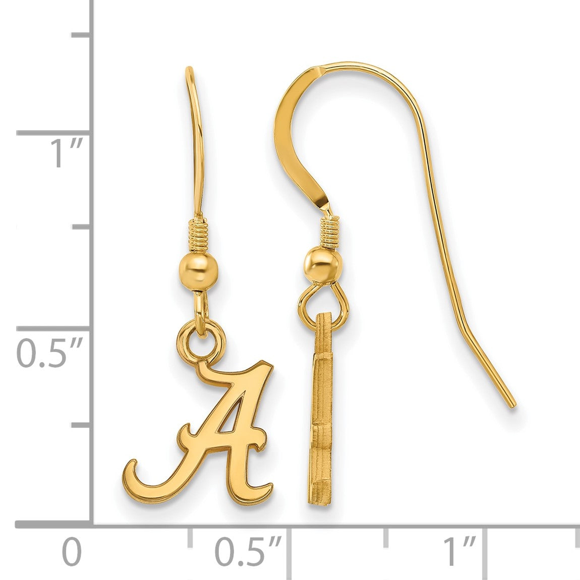 Sterling Silver Gold-plated LogoArt University of Alabama Letter A Extra Small Dangle Wire Earrings